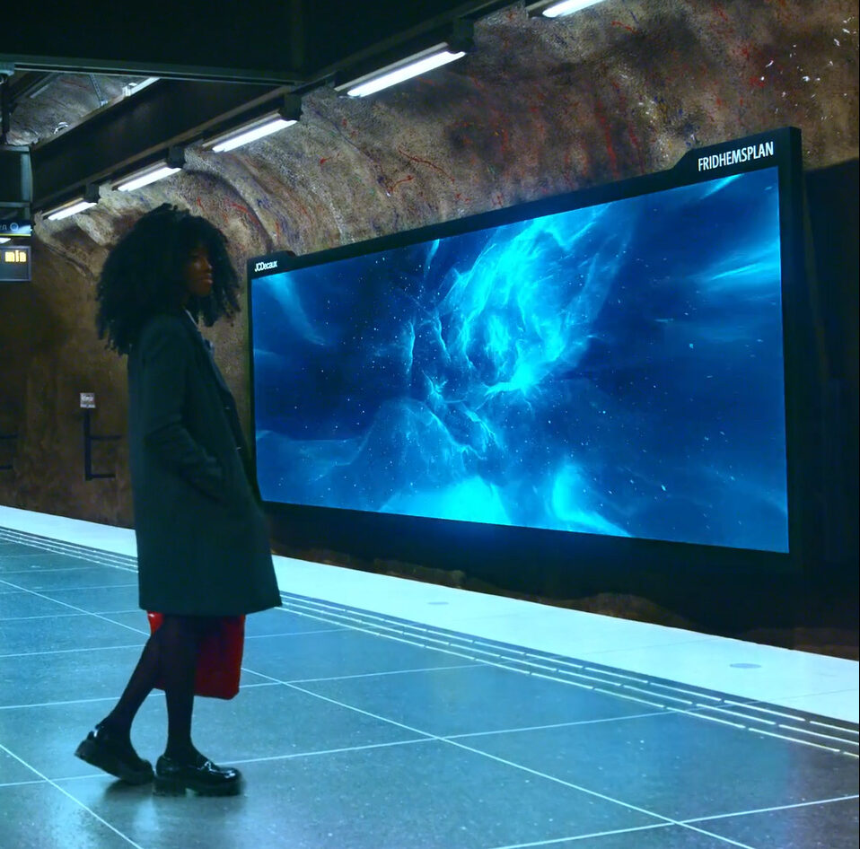 We’re launching the next level of digital outdoor advertising: 19 sqm high-resolution digital screens, strategically placed at Stockholm’s busiest subway stations. Each week, over 1.1 million people travel via the Stockholm subway, with our stations reaching 92% of these commuters, boarding or disembarking at one of our 14 concept stations. These screens can be easily linked to create synchronized campaigns across multiple surfaces, perfect for enhancing the brand experience, launching new products, or delivering wow effects with dynamic visuals. With superior technical quality, you can expect razor-sharp graphics and a premium feel.